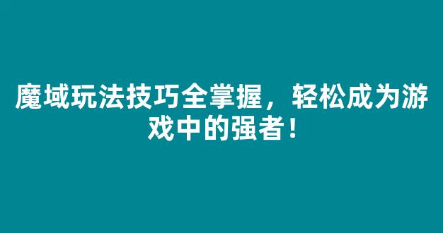 魔域冒险全攻略:掌握技巧,轻松成为游戏中的强者