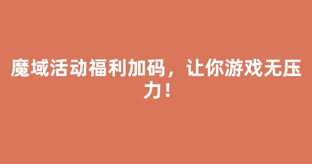 魔域活动福利加码,让你游戏无压力!在这个充满激情与挑战的游戏世界中,让我们一起享受游戏的乐趣,收获满满的福利吧!记得关注官方公告,了解更多活动信息,让每一次参与都成为一次难忘的体验。